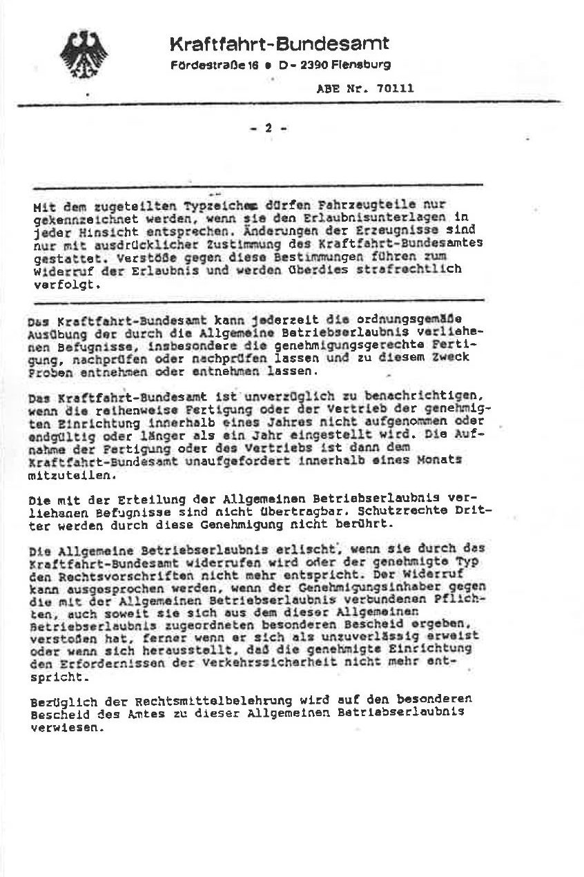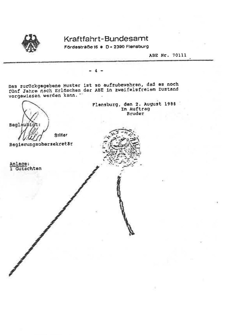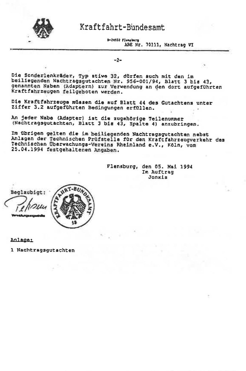 ABE für Atiwe Lenkrad Typ 32 ( KBA 70111 )