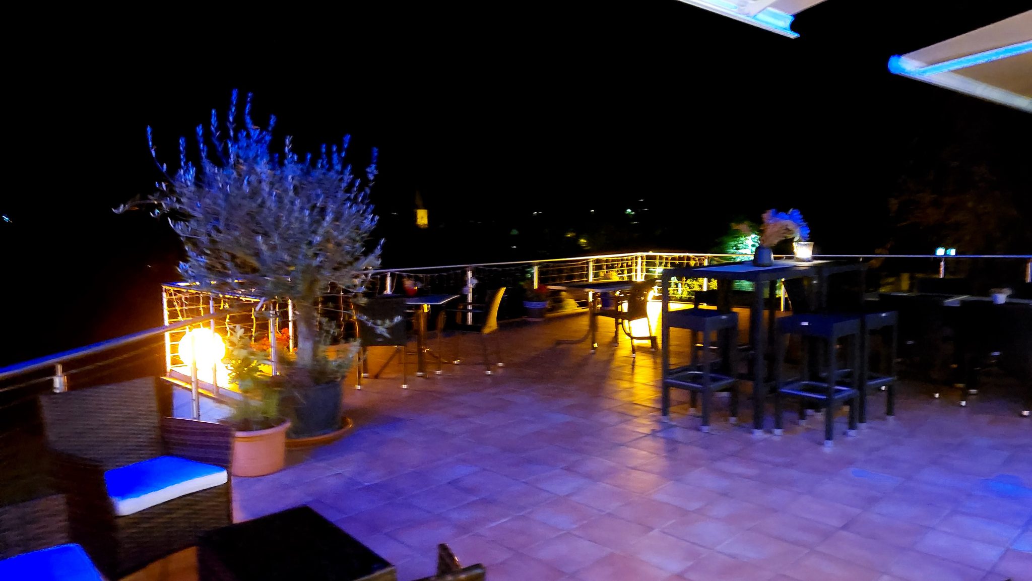 Hotel Sonnenhof – Terrasse in abendlicher Stimmung |