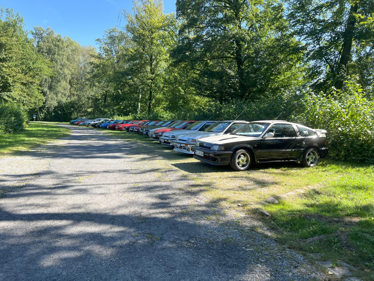 | Parkplatz Adlerwarte. Der Busparkplatz wurde in einer Dreierreihe belegt |
