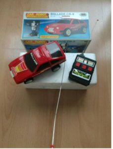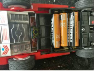 It can be used as a RC with 4-AA batteries in de car itself and in the remote control (Left, Right and FWD, so NOT REVERSE !!! this function doesn’t exsist) works a 9V-battery.
