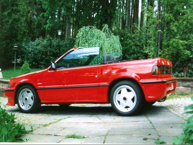 7,5 x 15 Borbet A-Felgen mit 205/50/15 Reifen; 40 mm Tieferlegung mit H&R-Federn; Farbe: Ferrari-Testorossa-Rot; Schneider Front- und Heckschürze; der Kofferraumdeckel ist von einem Fiat X 1/9