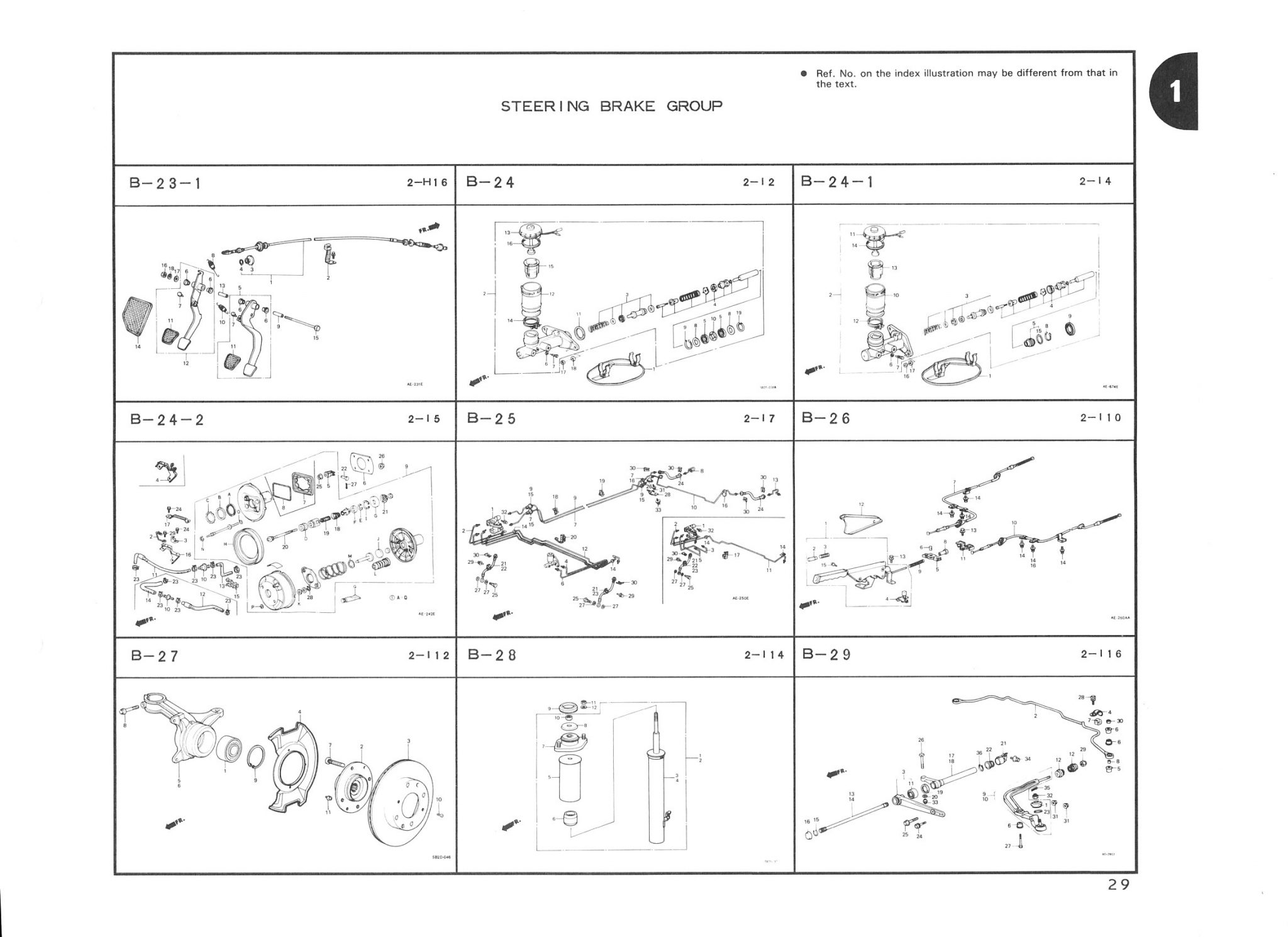 | Pedale – Bremskraftverstärker – Bremsflüssigkeitsbehälter – Bremsflüssigkeitsleitungen – Radaufhängung – Stoßdämpfer – Quer- und Längslenker |