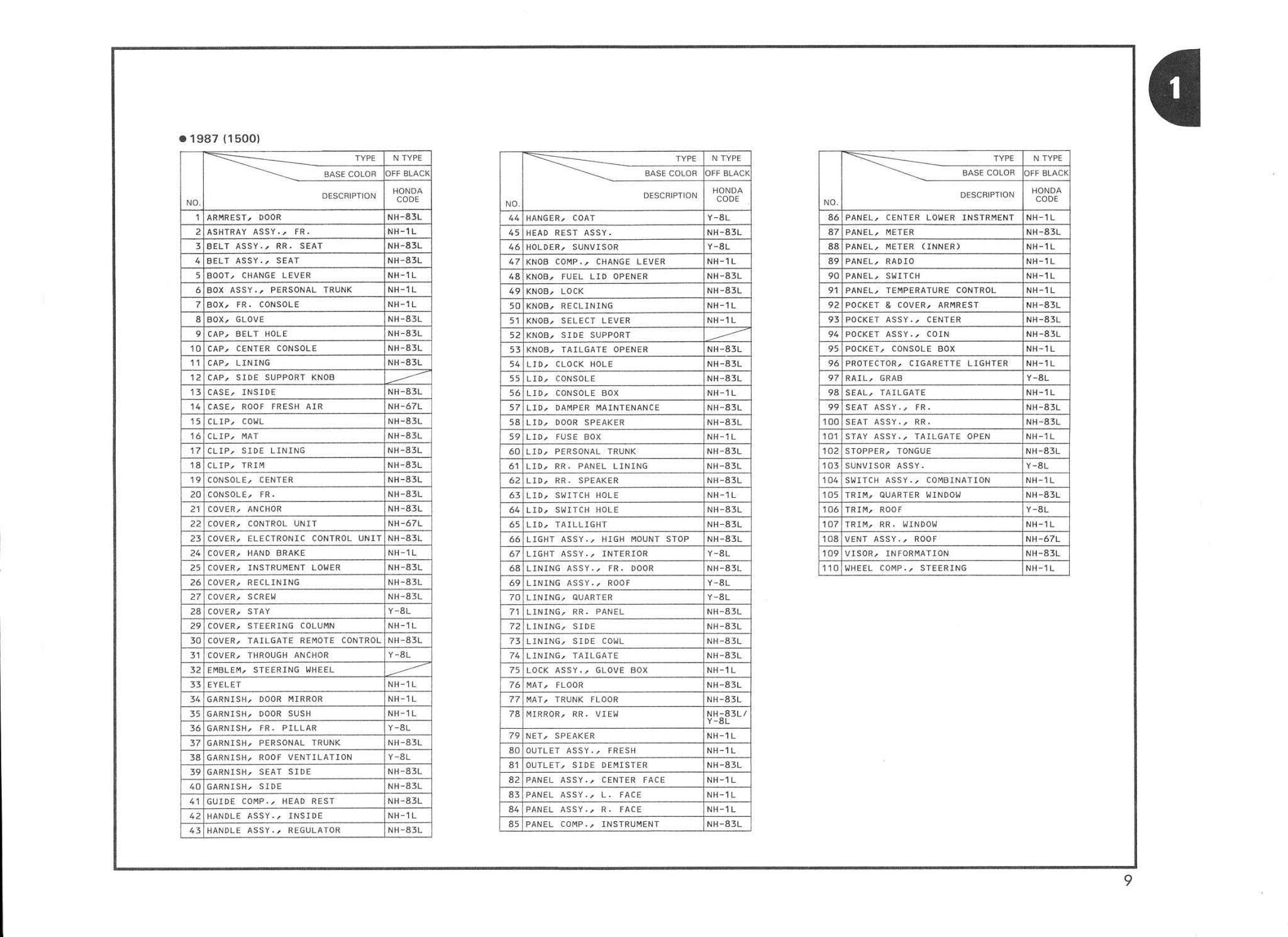 | Außenspiegel – Sonnenblenden – Griffe – Bordwerkzeug – Frontmaske – Stoßstangen (vorne und hinten) |